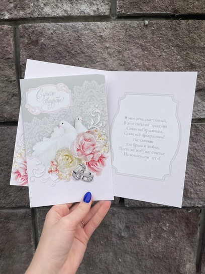 Открытка "С Днем Свадьбы", отличное дополнение к букету.