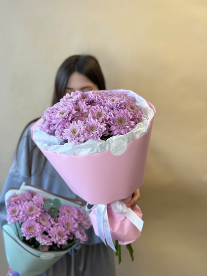 Стильный букет из кустовых хризантем. *Цвет оформления может отличаться.