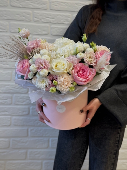 Нежная композиция в коробке. *Состав цветов может незначительно отличаться.